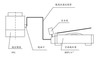 5.1.1、使用前,务必要认真阅读“超高压油泵”和“HN液压螺母”的使用说明书。